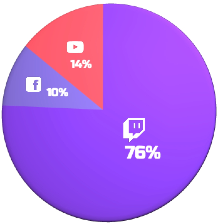 Twitch chiếm 76% số giờ xem trên các nền tảng phát trực tiếp, với hơn 6,1 tỷ giờ. YouTube Gaming Live (14%) và Facebook Gaming (10%) chiếm chưa đến 1/4 tổng số lượt xem video phát trực tuyến, với lần lượt là 1,1 tỷ và 803 triệu giờ xem, điều này cho thấy tiềm năng doanh thu của loại nội dung này.